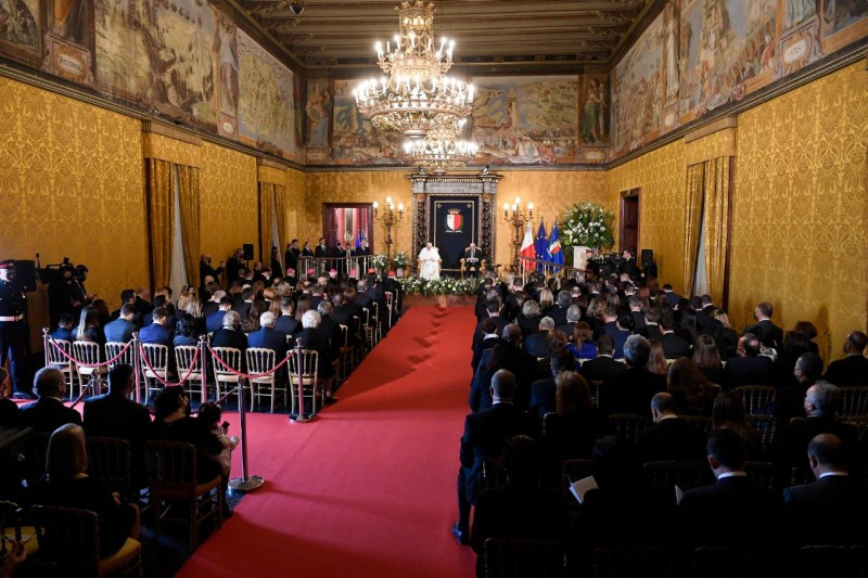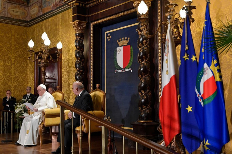 Őseitek vendégül látták Pál apostolt, miközben Róma felé tartott, és „igen emberségesen” bántak vele és útitársaival (ApCsel 28,2). Most Rómából érkezve én is átélem a máltaiak meleg fogadtatását, amely kincs nemzedékről nemzedékre öröklődik az országban – kezdte beszédét Ferenc pápa a máltai vezetők és a diplomáciai testület tagjaihoz az elnöki palota nagy tanácstermében, ahol közel 150-en gyűltek össze tiszteletére.