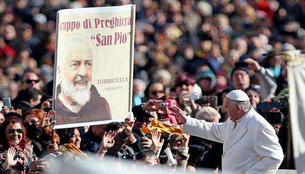 Ferenc pápa reggel hétkor indul helikopterrel a Vatikánból Pio atya szülővárosába, Pietrelcinába, ahol Benevento érseke fogadja. A Szentatya imát mond Pio atya kápolnává alakított szülőházánál, majd találkozik a hívekkel, akikhez beszédet intéz.