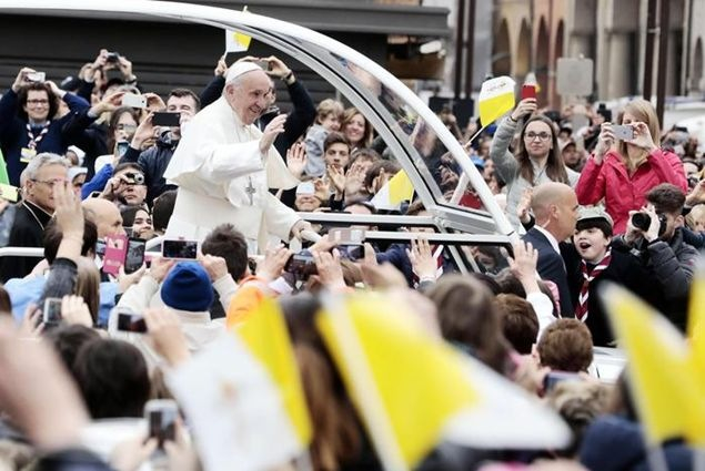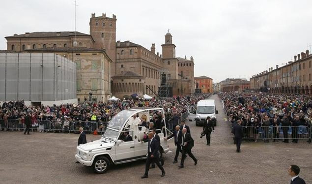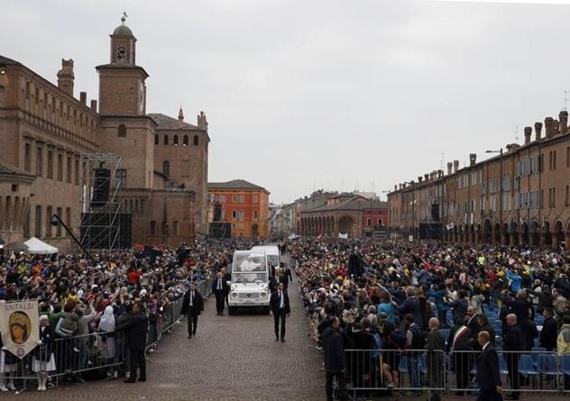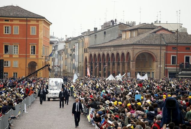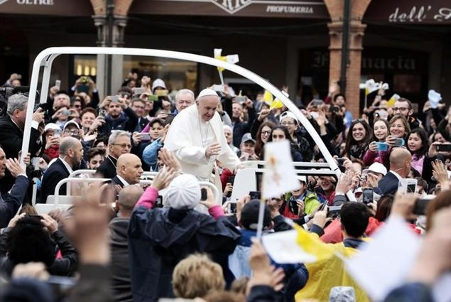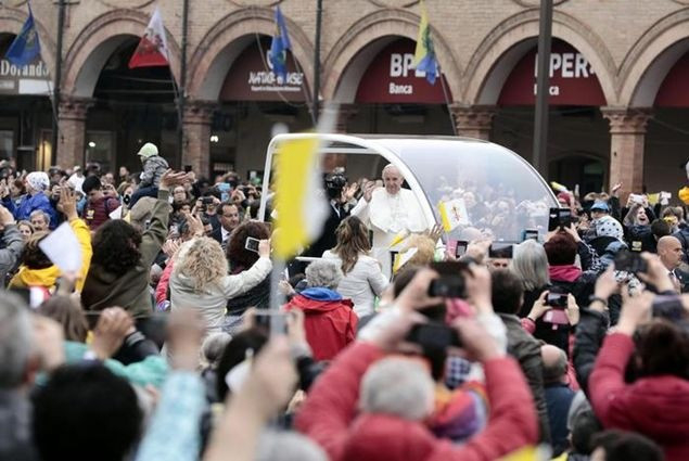 Köszönetet mondok neked, kedves Francesco püspök, és mindnyájatoknak, Emilia-Romagna térség püspökei, jelenlétetekért, és főleg az egyházmegye püspökének, Francesco Cavinának: buzdítalak titeket, hogy mindig álljatok papjaitok mellett: hallgassátok meg őket, legyetek közel hozzájuk gyengéd, gondoskodó szeretettel!