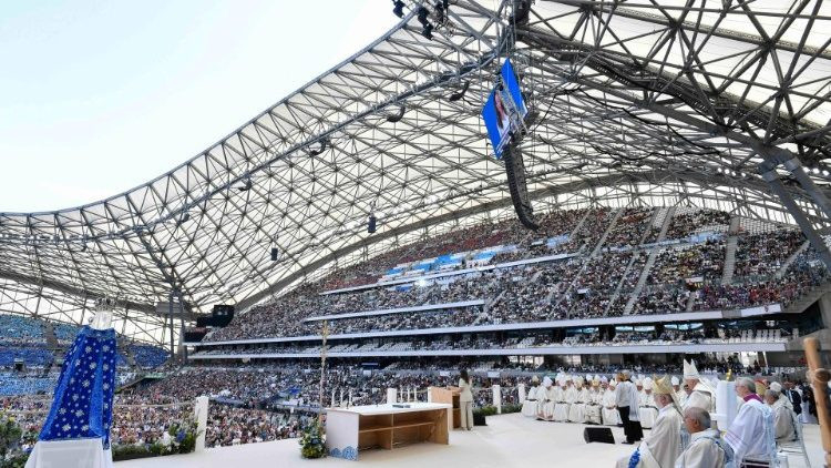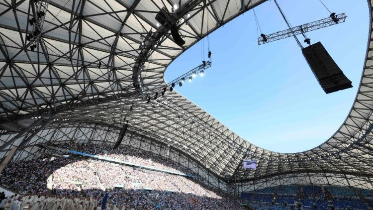 Nagy szeretettel köszöntöm a betegeket, a gyermekeket és az időseket, akik a civilizáció emlékezetét jelentik. Külön is gondolok a nehézségekkel küszködőkre és a város összes munkására. A marseille-i kikötőben dolgozott Jacques Loew, Franciaország első munkáspapja. Kívánom, hogy tartsák tiszteletben, támogassák és védelmezzék a munkavállalók méltóságát!