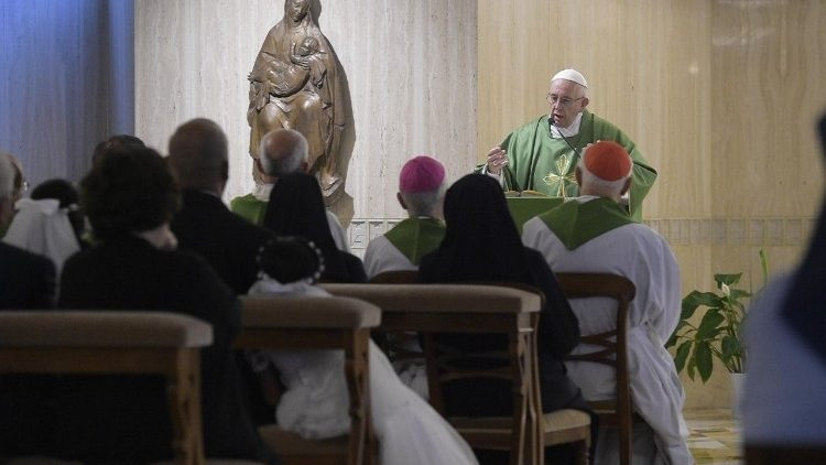 Kérnünk kell tehát a kegyelmet, hogy megértsünk valamit e keresztény misztériumból, és tökéletesek legyünk, mint az Atya, aki minden javát odaadja jóknak és gonoszoknak egyaránt. Jót tesz nekünk, ha ma az egyik ellenségünkre gondolunk, azt hiszem, mindannyiunknak van. Gondoljunk valakire, aki ártott nekünk, vagy rosszat akar, rosszat szeretne nekünk. A maffiózók így imádkoznak: „Ezért megfizetsz”. A keresztény ember így imádkozik: „Uram, add meg neki áldásodat, és taníts meg, hogy szeressem”. Gonduljunk egyik ellenségünkre! Mindannnyiunknak van. Gondoljunk rá, és imádkozzunk érte. Kérjük az Úr kegyelmét, hogy szeretni tudjuk – fohászkodott homíliája végén Ferenc pápa.
