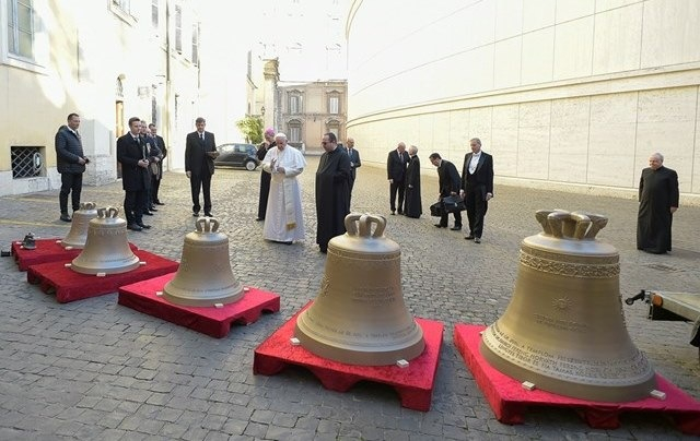 Tóth Tamás felidézte: a Győr főterén álló Loyolai Szent Ignác bencés templom négy harangját 1916-ban, az I. világháború idején rekvirálták, hogy ágyút öntsenek belőlük. A 100. évforduló alkalmából a helyi katolikus egyház és a győri üzletemberek összefogtak, hogy a templom visszakaphassa harangjait. A gyűjtés olyan jól sikerült, hogy a négy eltulajdonított harang helyett hatot öntethettek az innsbrucki Grassmayr harangöntő műhelyben. A hat harangot hat szentnek, Szent Mórnak, Szent Mihálynak, Szent Ignácnak, Szent Mártonnak, Szent Maurusnak, valamint Szent Placidusnak ajánlották. A harangokat Innsbruckból Rómába szállították, onnan december 8-án indulnak Magyarországra.