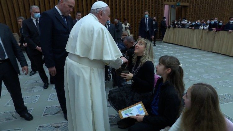 Ferenc pápa nagyon kedvesen, magyarul köszöntötte őt: „Isten hozta!”. Ágnes elmondta: „Szentatya, én Magyarországról jövök és hozom magammal a Covid-árva gyermekek köszönetét, akiknek szeretettel adományozta ezt a szobrot. Ők itt mellettem a gyermekeim, kérem, hogy áldja meg őket és rajtuk keresztül valamennyi Covid-árva gyermeket. Kérem, hogy áldja meg ezt a Szent József-szobrot.” „Igen, nagyon szép, szeretem Szent Józsefet” – mondta mosolyogva a pápa, majd áldását adta az adományozott bronzszoborra és a gyermekekre.