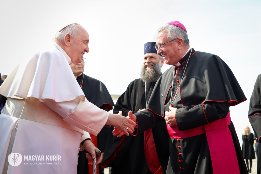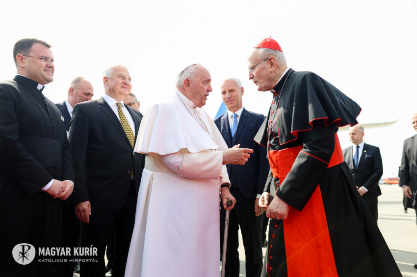 A repülőtéren a Szentatyát fogadta egyházi részről Erdő Péter bíboros, prímás; Michael Wallace Banach apostoli nuncius; Veres András győri megyéspüspök, a Magyar Katolikus Püspöki Konferencia (MKPK) elnöke, Kocsis Fülöp hajdúdorogi érsek-metropolita, valamint Tóth Tamás, az MKPK titkára, a Szentatya magyarországi apostoli látogatásának általános koordinátora; állami részről Semjén Zsolt miniszterelnök-helyettes, Szijjártó Péter külgazdasági és külügyminiszter, Rétvári Bence, a Belügyminisztérium parlamenti államtitkára; Soltész Miklós, a Miniszterelnökség egyházi és nemzetiségi kapcsolatokért felelős államtitkára és Azbej Tristan, a Miniszterelnökség üldözött keresztények megsegítéséért és a Hungary Helps Program megvalósításáért felelős államtitkára.