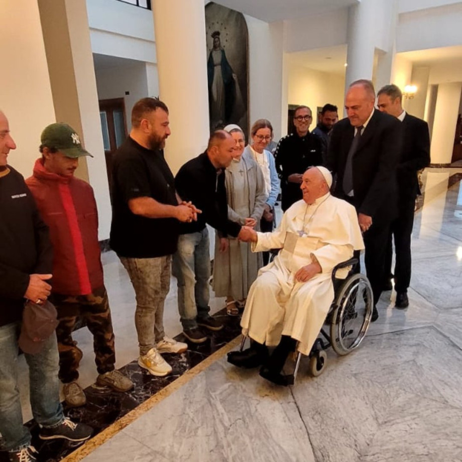 Mielőtt a pápa elhagyta volna a Vatikánt, a Szent Márta-házban hajléktalan emberekkel találkozott, akik a Szent Péter tér közelében élnek az utcán. A körülbelül tízfős csoportot Konrad Krajewski bíboros, a Szeretetszolgálat Dikasztériumának prefektusa kísérte – közölte a Szentszéki Sajtóközpont.