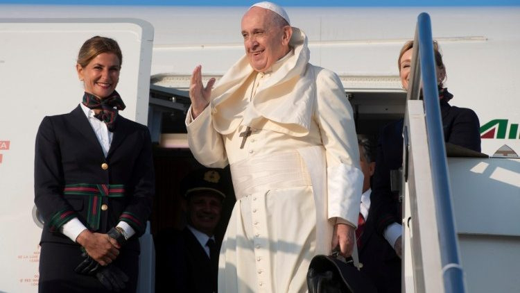 A pápa a repülőtérről pápamobilon tette meg a nunciatúrára vezető 7 kilométeres utat. A nunciatúra előtt fiatalok egy csoportja és a szentszéki képviselet egyházi munkatársai fogadták.