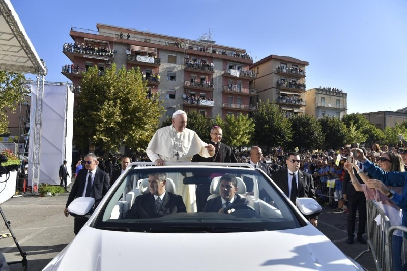 Piazza Armerinában Ferenc pápa a kora reggeli órákban találkozott a város és a térség lakóival. A város három egymáshoz közeli terén mintegy negyvenezren hallgatták a pápa beszédét, aki innét továbbindult Palermóba, ahol szentmisét mutatott be, találkozott a papokkal, a püspökkel, majd este találkozni fog a fiatalokkal. Zsúfolt programja után Ferenc pápa késő este tér vissza a Vatikánba, és vasárnap a szokott módon megtartja a déli Úrangyala imádságot.