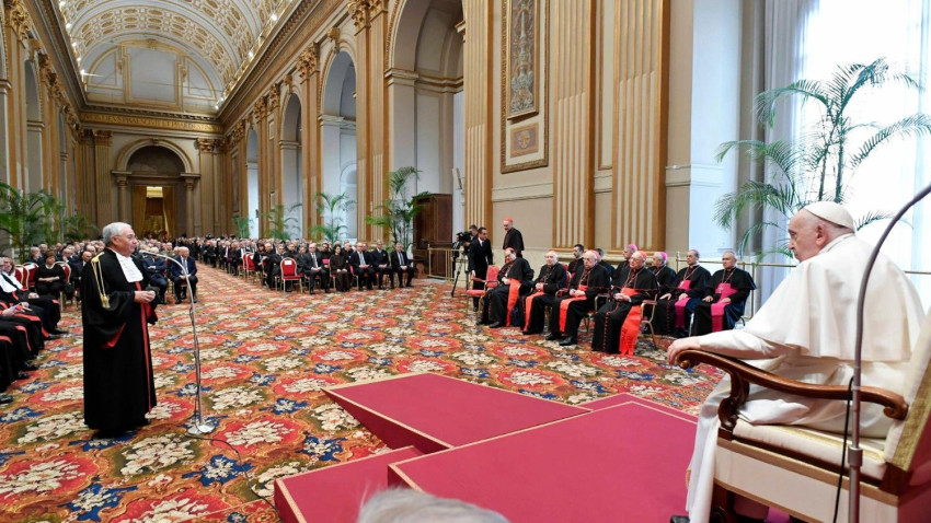 Ferenc pápa a bírósági évad megnyitása alkalmából elmondott beszédében az igazságszolgáltatáshoz szükséges bátorság erényére összpontosított. A Szentatya felidézte, hogy a keresztények számára ez az erény nem csupán a hősies emberek sajátos jellemzője, hanem „olyan tulajdonság, amely a Krisztussal való találkozás során adatik meg és erősödik meg, mint a Szentlélek cselekvésének gyümölcse, amelyet bárki megkaphat, ha imádkozik hozzá”. Ez különösen abban nyilvánul meg, hogy „türelemmel és kitartással cselekszünk, elutasítva azokat a belső és külső nyomásokat, amelyek hátráltatják a jó megvalósítását”.
