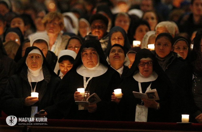 Köszönöm, hogy így, mindnyájan együtt fejezzük be a megszentelt élet évét. Haladjatok előre! Valamennyiünknek megvan a maga helye, a maga munkája az egyházban. Kérlek, ne feledkezzetek el első megszólításotokról, az első hívásról. Idézzétek fel! Azzal a szeretettel, amellyel egykor meghívott, az Úr ma is folytonosan hív titeket. Ne engedjétek, hogy elhalványuljon az első hívás szépsége és ámulata! És folytassátok munkátokat! Milyen szép ez! Folytatni. Mindig van, mit tenni. Ám a legfontosabb az imádság. A megszentelt élet „veleje” az imádság: imádkozzatok! És így szépen megöregszünk, érlelődünk, mint a jó bor!