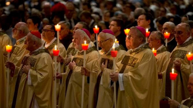 Máriához és Simeonhoz hasonlóan ma mi is szeretnénk karunkba venni Jézust, hogy találkozhasson népével, és biztos, hogy csak akkor tudjuk ezt megtenni, ha engedjük, hogy megragadjon minket Krisztus misztériuma – figyelmeztetett a Szentatya. – Vezessük a népet Jézushoz, de közben engedjük, hogy minket ő vezessen. Ez az, amiknek lennünk kell: vezetett vezetőknek.