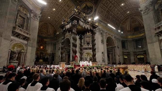 Képzeletben szemünk elé idézzük Máriának, az édesanyának a képét, aki karján a gyermek Jézussal halad előre. Beviszi őt a templomba, bevezeti népe körébe, azért viszi, hogy találkozhasson Jézus az ő népével – mondta Ferenc pápa szentbeszédében.