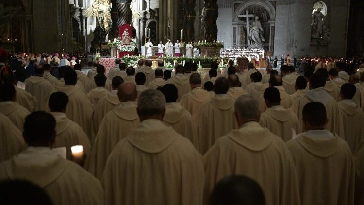 Ha visszaemlékezünk alapot adó találkozásunkra az Úrral, észrevesszük, hogy az nem privát dologként született Isten és köztünk. Nem, arra a hívő nép körében került sor, sok fivér és nővér mellett, meghatározott időben és helyen. Ezt mondja nekünk az evangélium, mivel azt mutatja, hogy a találkozás Isten népe körében történik, a nép konkrét történelmében, élő hagyományai között: a templomban, a törvény szerint, a prófécia légkörében, a fiatalokkal és idősekkel együtt (vö. Lk 2,25–28.34). Így van ez a megszentelt élettel is: az Egyházban születik és bontakozik ki; ha elszigetelődik, elszárad. Akkor válik éretté, ha a fiatalok és idősek együtt haladnak, ha a fiatalok rátalálnak a gyökerekre, és az idősek szívesen fogadják a gyümölcsöket. Viszont megáll a növekedésben, ha egymagában jár, ha a múltra koncentrál vagy a túlélésre játszik. Ma, a találkozás ünnepén, kérjük azt a kegyelmet, hogy újra felfedezzük az élő Urat, a hívő nép körében, és hogy találkoztatni tudjuk a kapott karizmát a ma kegyelmével.