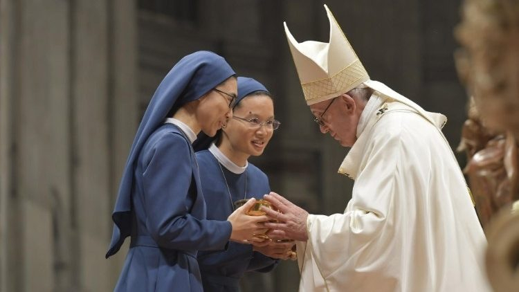 Íme, a megszentelt élet: dicsőítés, mely örömre gyújtja Isten népét, prófétai látás, mely felfedi azt, ami számít. Amikor a megszentelt élet ilyen, akkor virágzik és felhívássá válik mindenkinek a középszerűség ellen: az ellen, hogy csökkentsük a magasságot a lelki életben, a kísértés ellen, hogy engedményeket csikarjunk ki Istennél, a kényelmes és világias élethez való alkalmazkodás ellen, a panaszkodás – az állandó panaszkodás! –, az elégedetlenkedés és az önsajnálat ellen, azon szokásunk ellen, hogy azt mondjuk: „tesszük, amit tehetünk”, „mindig is így csináltuk”: ezek nem Isten szerinti mondatok! A megszentelt élet nem túlélés, nem készület az „ars bene moriendi”-re [a szép halálra]: ez a jelenlegi kísértés a hivatások csökkenése láttán. Nem! Nem túlélés, hanem új élet! „Jaj, de hát kevesen vagyunk…” – új élet! A megszentelt élet élő találkozás az Úrral az ő népében, hívás a mindennapok hűséges engedelmességére és a Lélek hallatlan meglepetéseire, annak látása, akit érdemes átölelni, hogy örömünk legyen: Jézus!