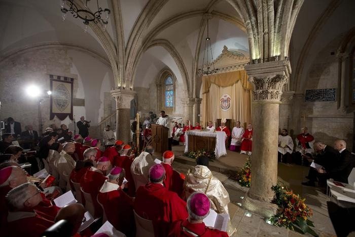 A Szentatya homíliájában rámutatott, hogy a Cenákulumban született az Egyház, amelynek sajátossága, hogy kifelé nyit, misszióba indul. Mire emlékeztet minket a Cenákulum? A szolgálatra: Jézus megmosta tanítványai lábát, hogy mi is szolgáljuk a szegényeket, a betegeket és a kitaszítottakat. Emlékeztet minket az Eucharisztiára, az áldozatra: Jézus példájára, aki felajánlotta magát értünk az Atyának, mi is felajánlhatjuk életünket, munkánkat, örömeinket és fájdalmainkat Istennek. A Cenákulum a barátságra is emlékeztet: a keresztények legszebb élménye ugyanis az, ha Jézus Krisztus barátaivá válnak. A búcsúra és az ígéretre is emlékeztet e hely, hiszen Jézus nem hagy el minket soha. De az álnokság, a kíváncsiság és az árulás emlékét is őrzi a Cenákulum és bármelyikünk tartozhat e csoportba, ha lenézzük vagy elítéljük testvéreinket, ha bűneinkkel eláruljuk Jézust. A megosztás, a testvériség, a harmónia és a béke jele is köztünk ez a szent hely.