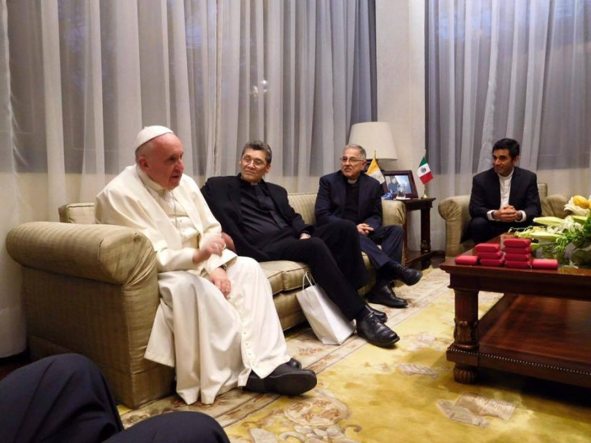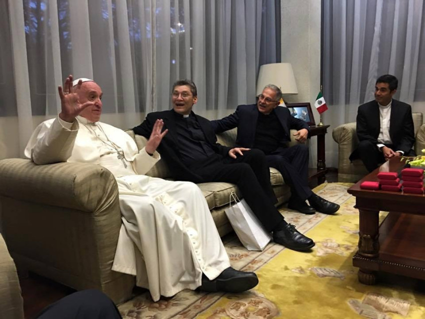Ferenc pápa a találkozó alkalmával rövid, kötetlen, testvérek közötti beszélgetést folytatott hat mexikói jezsuitával. Rendtársai megajándékozták a pápát a mexikói Boldog Miguel Agustín Pro ereklyéjével.