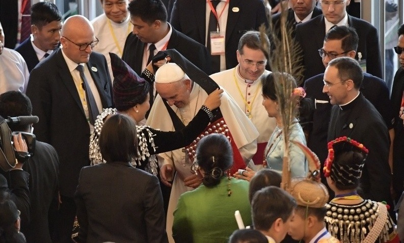 Beszédében a Szentatya megfogalmazta mianmari látogatásának alapvető célját: „Mindenekelőtt azért jöttem, hogy együtt imádkozzam a kicsi, de buzgó helyi katolikus közösséggel, hogy megerősítsem a hitben, és bátorítsam őket az ország javára végzett szolgálatukban. Szeretném átölelni Mianmar egész lakosságát és a bátorítás szavát nyújtani mindazoknak, akik egy igaz és megbékélt társadalom építésén fáradoznak.”