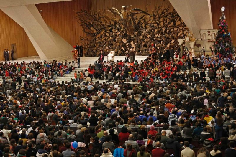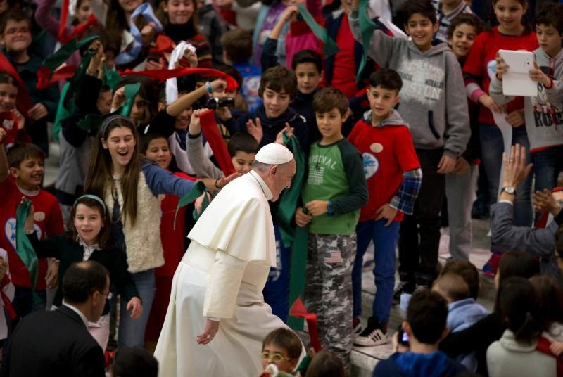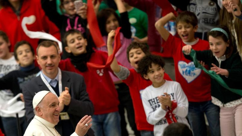 Szeretetetek legszebb gyümölcseit hoztátok ma el ide. Az anyaság és az apaság Isten ajándékai, de az ajándékot elfogadni, a társadalomban fölmutatni csodás szépségét – ez a ti feladatotok. Minden egyes gyermeketek egyedülálló teremtmény, akiből nem lesz újabb soha az emberiség történetében. Ha megértitek ezt, vagyis hogy mindnyájatokat Isten akarta, elámulhattok, hogy milyen nagy csoda is egy gyermek! Egy gyermek megváltoztatja az életet! Mi mindannyian láttuk – nők és férfiak –, hogy amikor egy gyermek érkezik közénk, az élet megváltozik, más lesz. Egy gyermek olyan csoda, amely megváltoztatja az életet! Ti, fiúk és lányok, éppen ezek vagytok: mindnyájatok a szeretet egyedülálló gyümölcse, szeretetből születtetek és nevelkedtek. Egyedülállóak vagytok, de nem vagytok egyedül! A tény, hogy vannak fiú- és leánytestvéreitek, javatokra válik: egy nagycsalád fiú- és leánygyermekei sokkal inkább képesek a testvéri közösségre már csecsemőkoruktól kezdve. Egy olyan világban, amelyet inkább az egoizmus jellemez, a nagycsalád az összetartozás és az osztozás iskolája; ez a hozzáállás később az egész társadalom javára lesz.