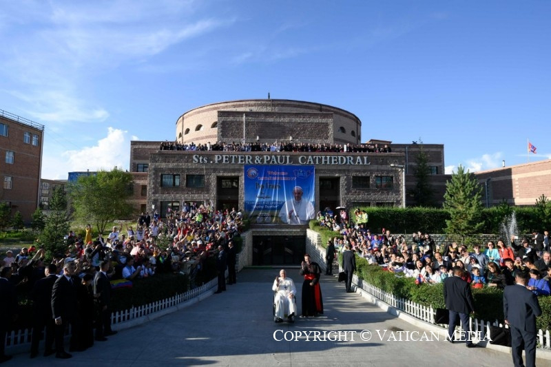 Megemlékezem hát Wenceslao Selga Padilla püspökről, az első apostoli prefektusról, a Mongóliában élő egyház mai időszakának úttörőjéről és e székesegyház építtetőjéről. Itt azonban a hit nemcsak az 1990-es évekre nyúlik vissza, hanem igen ősi gyökerei vannak. Az első évezred tapasztalatait, melyeket a Selyemút mentén elterjedt szír hagyomány evangelizációs mozgalma jellemzett, jelentős missziós munka követte: hogyan is ne emlékeznénk a 13. századi diplomáciai missziókra, de arra az apostoli gondoskodásra is, mely abban nyilvánult meg, hogy 1310 körül Montecorvinói Jánost nevezték ki Khān Bālīq első püspökévé, tehát a világ e hatalmas térségének felelősévé a mongol Yuan-dinasztia alatt? Ő készítette el a Zsoltárok könyvének és az Újszövetségnek az első mongol fordítását. Az evangélium iránti szenvedélynek ez a nagyszerű története rendkívüli módon folytatódott 1992-ben a Mária Szeplőtelen Szíve Kongregáció első misszionáriusainak ideérkezésével, akikhez más szerzetesközösségek tagjai, egyházmegyés papok és világi önkéntesek csatlakoztak. Mindannyiuk közül a serény és buzgó Stephano Kim Seong-hyeon atyát szeretném megemlíteni.