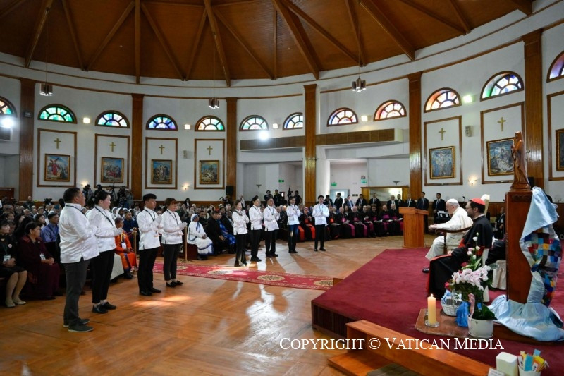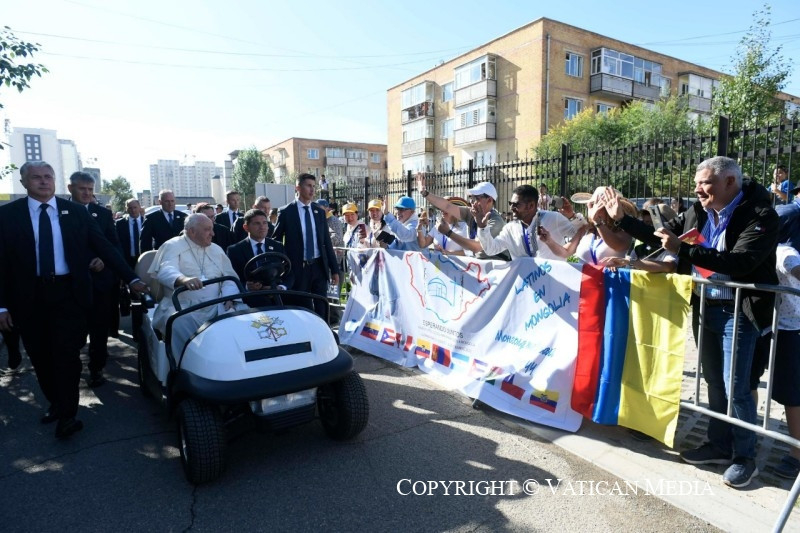 Mongóliában való jelenlétetek e harmincegy éve alatt ti, kedves papok, megszentelt férfiak és nők, lelkipásztori munkatársak, számos karitatív kezdeményezést hívtatok életre, melyek felemésztik energiátok nagy részét, és az irgalmas szamaritánus Krisztus könyörületes arcát tükrözik. Ez mintegy a névjegyetek, mely tiszteletet és megbecsülést váltott ki, mert sok emberrel tesztek jót a legkülönbözőbb területeken: a segítségnyújtástól az oktatásig, az egészségügyi ellátástól a kultúra fejlesztéséig.