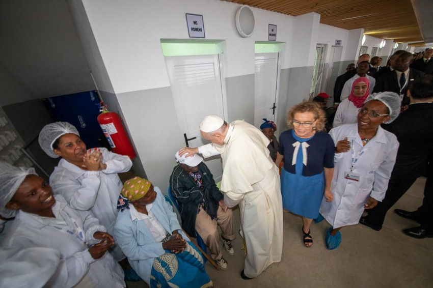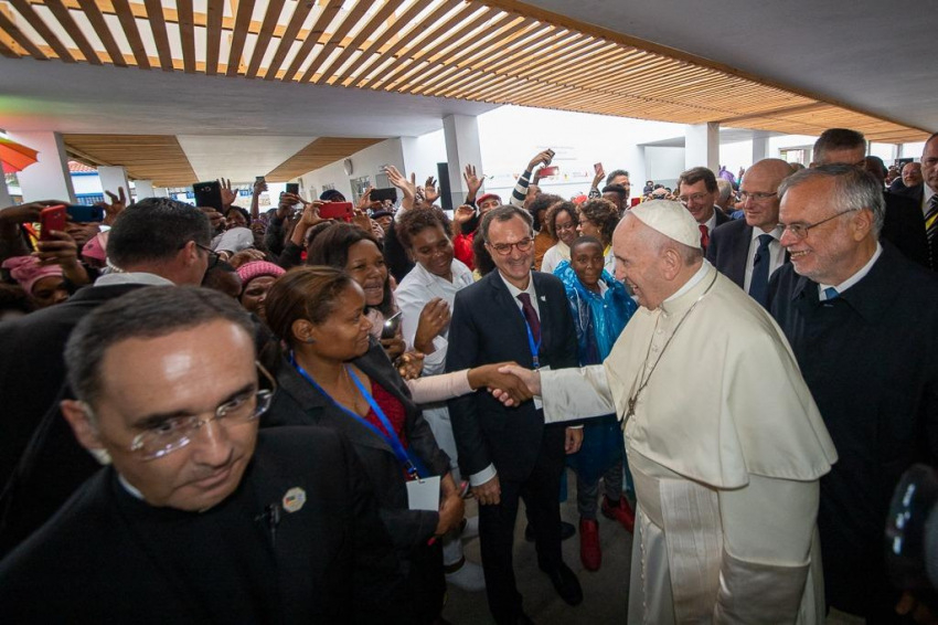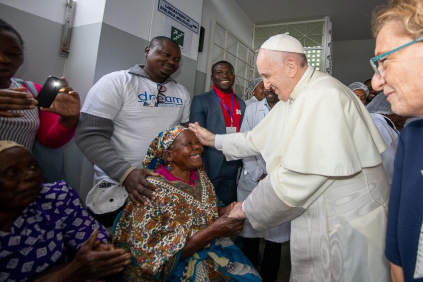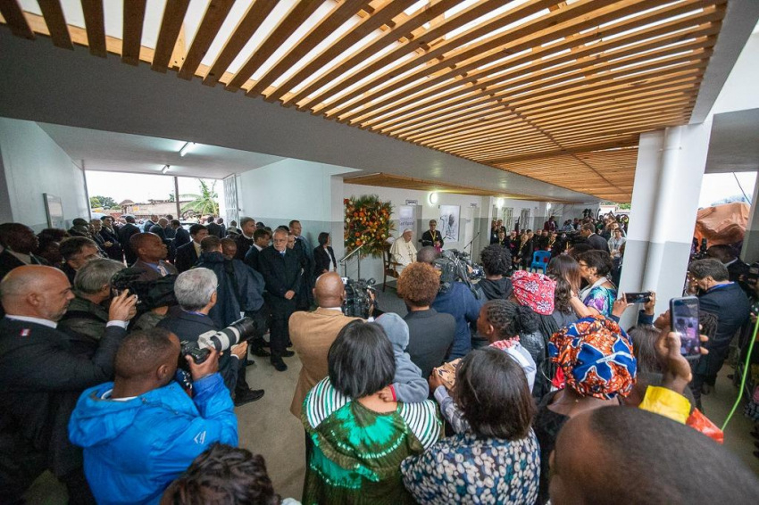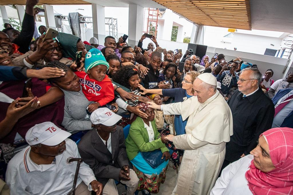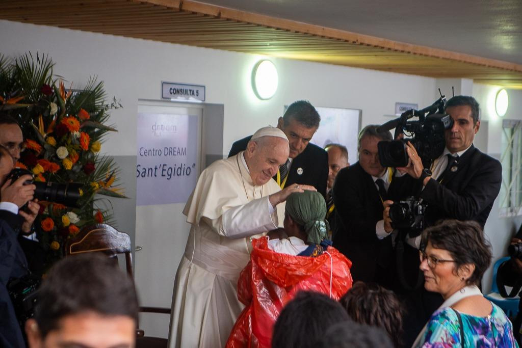 Ferenc pápát a központban a Sant’Egidio közösség alapítója, Andrea Riccardi és a zimpetói DREAM-központ koordinátora, Cacilda Massango fogadta, aki köszöntésében kifejezte, mennyire örülnek, hogy a pápa ellátogatott erre a helyre, ahol a rászorulók „ingyenesen kapnak gyógyszert, ellátást, ételt, és leginkább méltóságot és barátságot”.