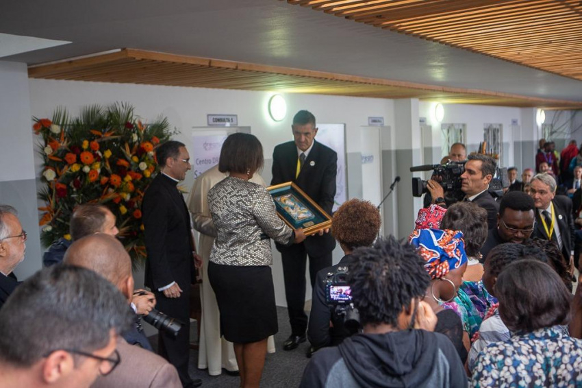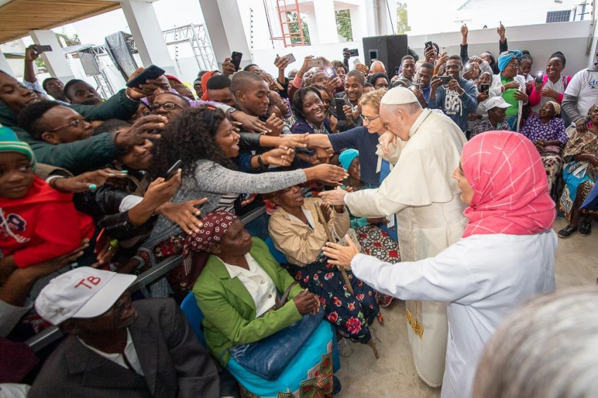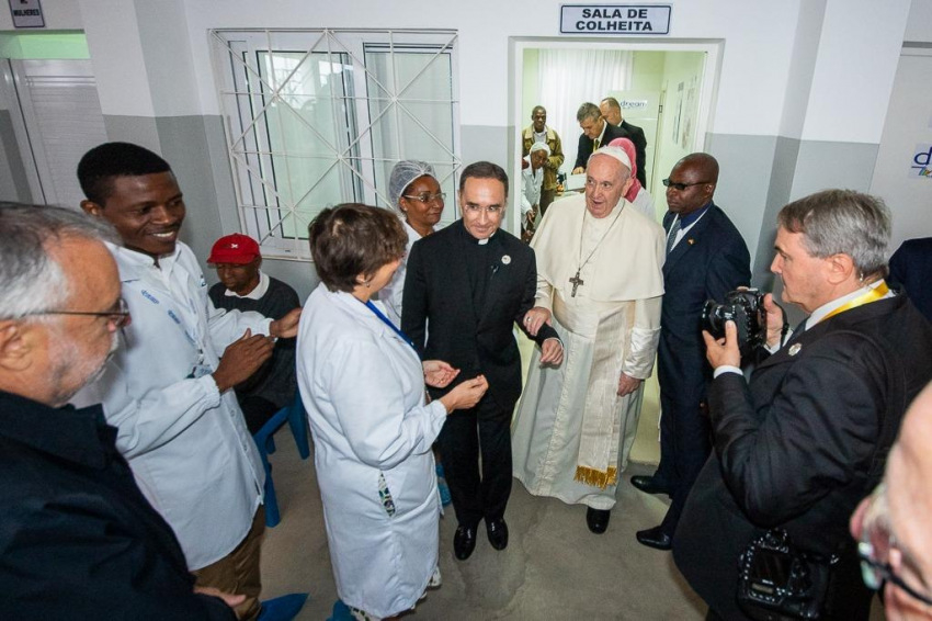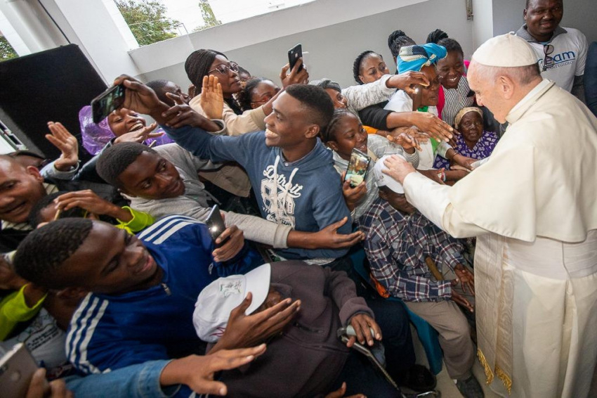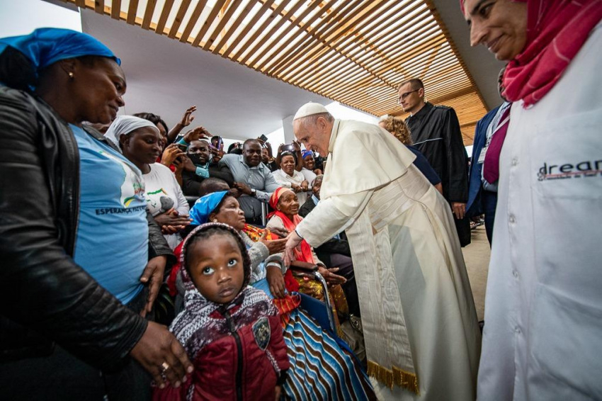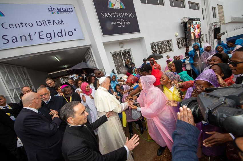 Ferenc pápát a központban a Sant’Egidio közösség alapítója, Andrea Riccardi és a zimpetói DREAM-központ koordinátora, Cacilda Massango fogadta, aki köszöntésében kifejezte, mennyire örülnek, hogy a pápa ellátogatott erre a helyre, ahol a rászorulók „ingyenesen kapnak gyógyszert, ellátást, ételt, és leginkább méltóságot és barátságot”.