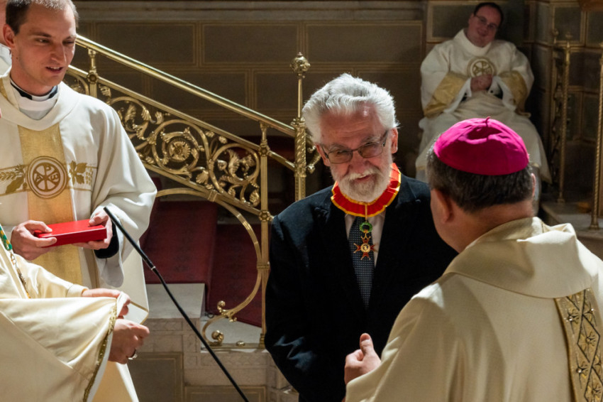 A szentmisén felolvasott kihirdetésben elhangzott: „Excellenciás és főtisztelendő Felföldi László pécsi megyéspüspök úr felterjesztésére őszentsége Ferenc pápa a Nagy Szent Gergely Rend tiszti fokozata kitüntetést adományozta Dr. Jobbágy Valér karnagy úrnak.”