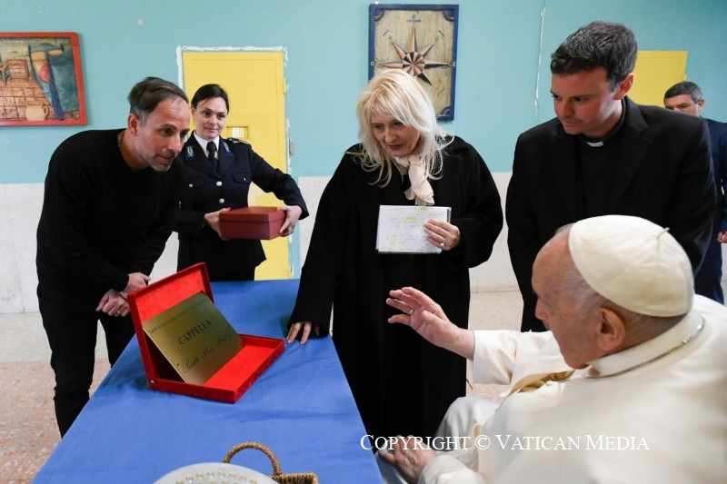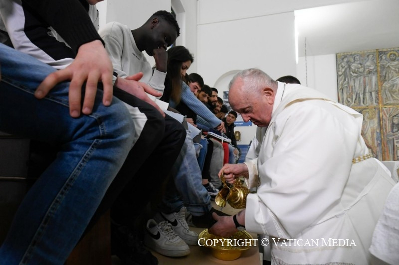 Most én is ezt teszem, emlékeztetőül arra, amit Jézus tanított nekünk: segítsük egymást. Így szebb az élet, és így tovább tudunk menni! A lábmosás alatt – remélem, sikerül elvégeznem, mert nem tudok jól járni –, a lábmosás alatt gondoljatok erre: „Jézus megmosta a lábam, Jézus megmentett, és most ez a nehézségem van…” Ez el fog múlni! Az Úr pedig mindig melletted van, sosem hagy el, sosem! Gondoljatok erre!