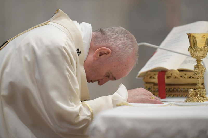 Ma nincs krizmaszentelési mise – remélem, hogy pünkösd előtt még megtarthatjuk, különben a következő évre kell halasztanunk –, de nem engedhetem, hogy ez a mise úgy múljon el, hogy nem emlékezem meg a papokról. A papok, akik feláldozzák életüket az Úrért, a papok, akik szolgák. Ezekben a napokban több mint hatvanan haltak meg itt, Olaszországban, akik törődtek a betegekkel a kórházakban, de az orvosokkal és ápolókkal is. Ők „a szomszédunkban élő szentek”, olyan papok, akik szolgálatuk végzése közben életüket adták. És azokra is gondolok, akik távol vannak. Ma levelet kaptam egy paptól, egy távoli börtön lelkészétől, aki leírja, hogyan éli meg ezt a nagyhetet a foglyokkal. Egy ferences. Papok, akik elmennek messzire, hogy elvigyék az evangéliumot, és ott meghalnak.