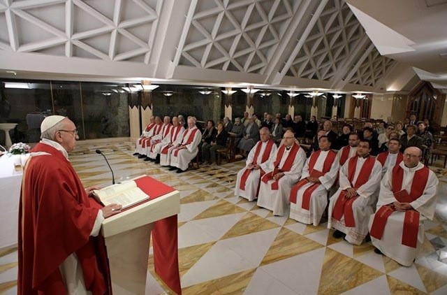 Ekkor pedig rabszolgák lesznek, mert összekeverik Isten igazságát a hazugsággal, és a teremtményeket imádják a Teremtő helyett – folytatta elmélkedését Ferenc pápa. – Nem vagyok szabad, és nem hallgatom meg az Isten szavát, ez a süketség nem hagy helyet sem a szeretetnek, sem pedig a szabadságnak: mindig rabszolgaságba taszít minket. Meghallgatom-e én Isten szavát? Beengedem-e? Ezt az igét, amiről az allelujában énekeltünk, hogy Isten szava élő és átható, megítéli a gondolatot és szándékot szívünk mélyén (Zsid 4,12 – 9. tónus)? Átható, belép. Beengedem-e én ezt a szót, vagy süket vagyok rá? És átalakítom-e külsőséggé, bálványimádássá, bálványimádó szokásokká vagy ideológiává? És akkor nem lép be a szívembe. Ez a keresztények oktalansága – jelentette ki a pápa.