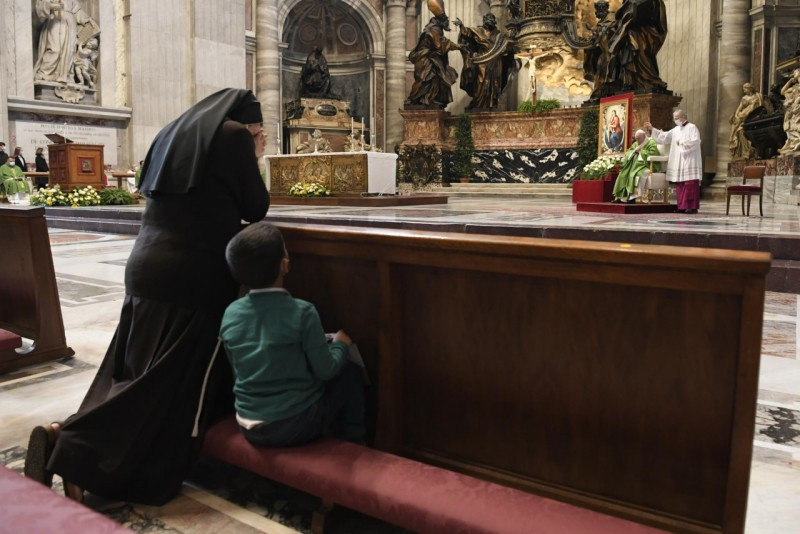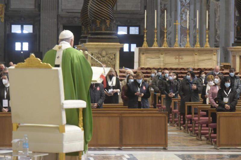 Szeretnék köszönetet mondani Isten sok hűséges szolgájának, akik nem hívják fel magukra a figyelmet, de akik így, szolgálva élnek. Például Roberto Malgesini atyára gondolok. [Comói pap, akit 2020. szeptember 15-én meggyilkoltak.] Ez a pap nem gyártott elméleteket; egyszerűen Jézust látta a szegényekben és az élet értelmét a szolgálatban látta. Gyengéden törölgette az emberek könnyeit, a vigasztaló Isten nevében. Napjának kezdete az ima volt, hogy befogadja Isten ajándékát; a nap középpontja a szeretet, hogy a kapott szeretetet gyümölcsöztesse; a vége pedig a ragyogó tanúságtétel az az evangéliumról. Ez az ember megértette, hogy ki kell nyújtania kezét a sok szegény ember felé, akikkel naponta találkozott, mert mindegyikben Jézust látta.