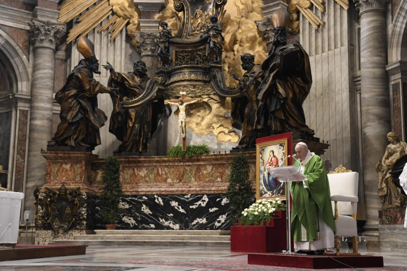 A szolga a legsúlyosabb sértést követi el: visszaadja neki a kapott ajándékot. „Te ezt adtam nekem, én ugyanezt adom neked, semmi többet.” Az Úr viszont arra hív bennünket, hogy nagylelkűen vessük be magunkat, a szeretet bátorságával győzzük le a félelmet, emelkedjünk felül a bűnrészessé tevő passzivitáson. Ma, a bizonytalanság idején, a kiszolgáltatottság idején ne tékozoljuk el életünket csak magunkra gondolva, mások iránt közömbösen! Ne tévesszük meg magunkat azzal, hogy „béke és biztonság van” (1Tessz 5,3)! Szent Pál arra biztat bennünket, hogy nézzünk szembe a valósággal, ne engedjük megfertőzni magunkat a közönnyel.