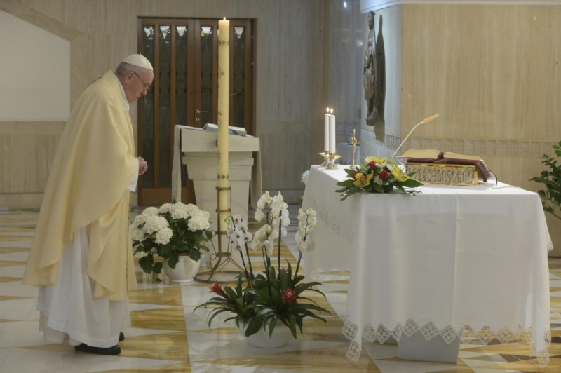 Ferenc pápa húsvét második szerdáján szentmiséjét a vatikáni Szent Márta-ház kápolnájában a szokásoknak megfelelően szentségimádással és eucharisztikus áldással zárta. A híveket a lelki áldozásra buzdította, majd elimádkozta a Regina Coeli (Mennynek királyné asszonya) kezdetű Mária-antifónát.