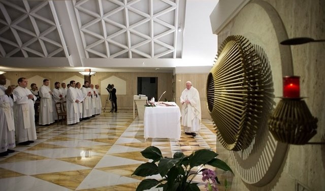 A világias lelkiség eltávolít minket a következetes élettől, következetlenné tesz bennünket. Úgy teszünk, mintha ilyenek volnánk, aztán máshogy élünk. A világiasságot pedig nehéz az elején fölismerni, mert olyan, mint a szú, amely lassan pusztítja el, teszi tönkre az anyagot, mígnem az használhatatlanná válik. Az az ember pedig, aki hagyja magát sodortatni a világiassággal, elveszíti keresztény identitását. A világiasság szúbogara megrontja keresztény identitását, képtelen következetes lenni. „Á, én nagy katolikus vagyok, atyám, minden vasárnap járok misére, nagyon katolikus vagyok.” Aztán elmegy dolgozni, és azt mondja: „Ha te megveszed tőlem ezt, akkor ennyi lesz a csúszópénz, amit kapsz.” Ez nem következetes élet, ez a világiasság, csak hogy egy példát mondjunk. A világiasság kettős élethez vezet, van a látszólagos, és van az igazi élet; mindez eltávolít Istentől, lerombolja keresztény önazonosságunkat – mondta homíliájában a pápa.
