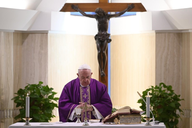 Ferenc pápa a szentmise elején kérte, hogy továbbra is imádkozzunk a betegekért. A Szentatya sokat gondol az otthonukba zárt családokra, gyerekekre és szülőkre, különösen is a karanténban levőkre. Az Úr segítse őket, hogy a szeretet, az együttélés új módjait, új eszközeit tudják felfedezni ebben az új helyzetben. „Ez szép lehetőség, hogy kreatív módon újra felfedezzük a valódi szeretetet a családban. Imádkozzunk a családokért, hogy a családi kötelékek mindig virágozzanak a jóért!”