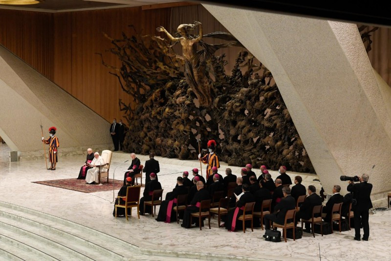 Tegnap a Francia Püspöki Konferencia és a Francia Szerzetesek és Szerzetesnők Konferenciája megkapta a független bizottság jelentését az Egyházban történt szexuális visszaélésekről. A bizottságot azzal bízták meg, hogy mérje fel a kiskorúak ellen elkövetett szexuális bántalmazás és erőszak jelenségének mértékét 1950-től napjainkig. Sajnos magas számokról van szó. Szeretném kifejezni az áldozatoknak szomorúságomat és fájdalmamat az őket ért trauma miatt, és szeretném kifejezni szégyenemet, szégyenünket, az én szégyenkezésemet, amiért az Egyház túl sokáig képtelen volt aggódásának középpontjába helyezni őket. Szeretném biztosítani őket imáimról. És így imádkozom, imádkozzuk mindannyian együtt: „Uram tied a dicsőség, mienk pedig a szégyen”: ez a szégyenkezés ideje. Bátorítom a püspököket, és titeket, kedves testvéreim, akik eljöttetek ide, hogy részt vegyetek ezen a kihallgatáson, bátorítom a püspököket és a szerzetes elöljárókat, hogy továbbra is tegyenek meg mindent annak érdekében, hogy hasonló tragédiák ne ismétlődhessenek meg. Kifejezem Franciaország papjainak közelségemet és atyai támogatásomat ebben a nehéz, de üdvös próbatételben, és kérem a francia katolikusokat, hogy vállalják felelősségüket annak érdekében, hogy az Egyház mindenki számára biztonságos otthon legyen. Köszönöm!