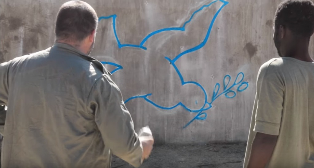 „Mindannyian békét akarunk – mutat rá Ferenc pápa. – Mindenkinél jobban vágyik rá az, aki a hiányától szenved. Mondhatunk csodálatos szavakat, de ha a szívünkben nincs béke, nem lesz a világban sem. Az evangéliumi békét, mely senkit sem rekeszt ki, erőszak nélkül és százszázalékos gyengédséggel építsük! Imádkozzunk azért, hogy a szív és a párbeszéd szava mindig felülkerekedjen a fegyverek szaván!”