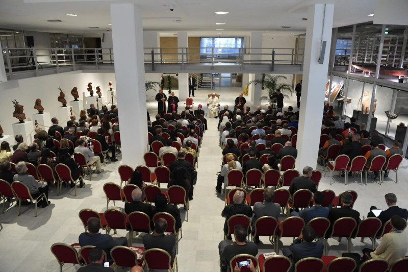 A szépség egyesít minket. Arra hív, hogy éljük meg az emberi testvériséget, szemben állva a harag, a rasszizmus, a nacionalizmus veszélyes kultúrájával. Néhány hónapja ebből a múzeumból vittek Pekingbe kínai művészeti alkotásokat, korábban pedig néhány muszlim országba érkeztek műtárgyak. Hány jó kezdeményezést lehet tenni a művészet révén, amin keresztül felül lehet emelkedni az akadályokon és a távolságon – hangsúlyozta Ferenc pápa, majd köszönetet mondott mindazoknak, akik gondjukba veszik ezeket az értékes tárgyakat. Mindenekelőtt Nicola Mapelli atyát, az Anima mundi múzeum kurátorát említette meg, aki egyébként a Pápai Missziós Művek misszionáriusa. A Szentatya háláját fejezte ki a restaurátorműhely dolgozóinak is, valamint mindazoknak, akik közreműködtek a munkában.