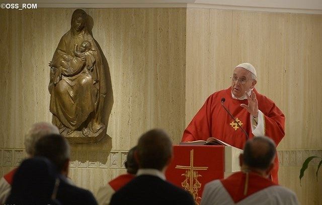 „Emlékezete a megtett útnak, emlékezete az Úrtól kapott számos kegyelemnek. Remény az Úrra tekintve, hiszen egyedül ő adhat nekünk reményt. Ahhoz pedig, hogy az Úrra tekintsünk, megismerjük az Urat, fogjuk az evangéliumot, és végezzük el ezt a szemlélődő imát. Ma például találjatok tíz percet, tizenötöt, nem többet, és olvassátok az evangéliumot, képzeljétek el, és mondjatok valamit Jézusnak. Semmi többet. És így jobban megismeritek Jézust, a reményetek pedig növekszik. Ne feledjétek, tekintsetek szilárdan Jézusra. Ehhez kell a szemlélődő ima” – zárta kedd reggeli szentbeszédét Ferenc pápa.