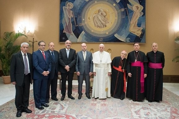 Ferenc pápa köszöntőjében elmondta, a csoport munkája abban áll, hogy megteremtse a vatikáni–palesztin vallásközi párbeszéd állandó bizottsága felállításának a lehetőségeit. „Nekünk, keresztényeknek a Szentföld az Isten és az emberiség között folytatott párbeszéd kiváltságos helye, mely Názáretben a Gábor angyal és Szűz Mária közötti dialógusban jutott csúcspontjára, és amire a Korán is utalást tesz – emelte ki a pápa. – Ez a párbeszéd később Jézus és a népe közötti kapcsolatban folytatódott. Jézus ugyanis Isten Szava, aki által az emberiséghez szól, ahogy egy palesztin vezető nevezte: Isten párbeszéde az emberiséggel. Ez a párbeszéd minden szinten folytatódik, a szellemi megfontolás, az imádság, a család, az egyes vallási közösség szintjén, de éppúgy a vallások között és a polgári társadalommal folytatott kapcsolatokban is. Ennek elsődleges feltétele a kölcsönös tisztelet, ami által a párbeszéd arra irányul, hogy megszilárdítsa ezt a tiszteletet mindenkiben, bármilyen körülmény között éljen is. Ebből a párbeszédből nagyobb kölcsönös ismeret és megbecsülés fakad, továbbá együttműködés a közjó érdekében.”