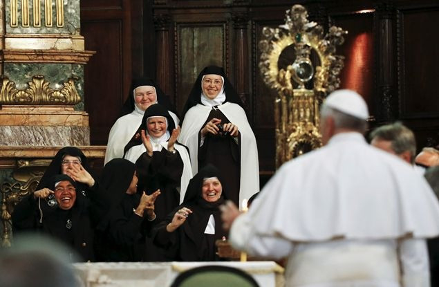 A szerzetesekhez szólva a pápa megállapítja: a megszentelt életnek vannak napos és árnyékos oldalai. Mindig fennáll a kísértés, hogy az árnyékos oldalt emeljük ki, és ne a naposat. Ez viszont azzal jár, hogy visszahúzódunk önmagunkba, folyton panaszkodunk, és mindig másokat vádolunk. Ehelyett – különösen most, a megszentelt élet évében – hagyjuk, hogy felülemelkedjen bennünk és közösségeinkben a szerzetesi hivatás szépsége, és valóban igaz legyen: ahol szerzetesek vannak, ott öröm van – utal a pápa a szerzetesekhez írt levelére.