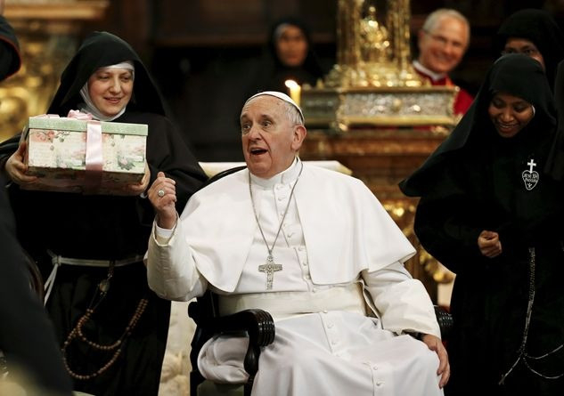 Milyen a hangulat a közösségeitekben? Megvan ez a hála, ez az isteni öröm, mely eltölti szíveteket? Ha ez megvan, akkor válik valóra kívánságom, hogy ne legyenek köztetek szomorú arcok, rosszkedvű és elégedetlen emberek, hiszen Krisztus-követői vagyunk – figyelmeztet Ferenc pápa.