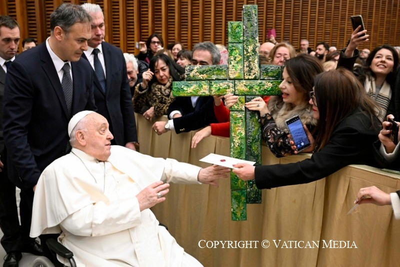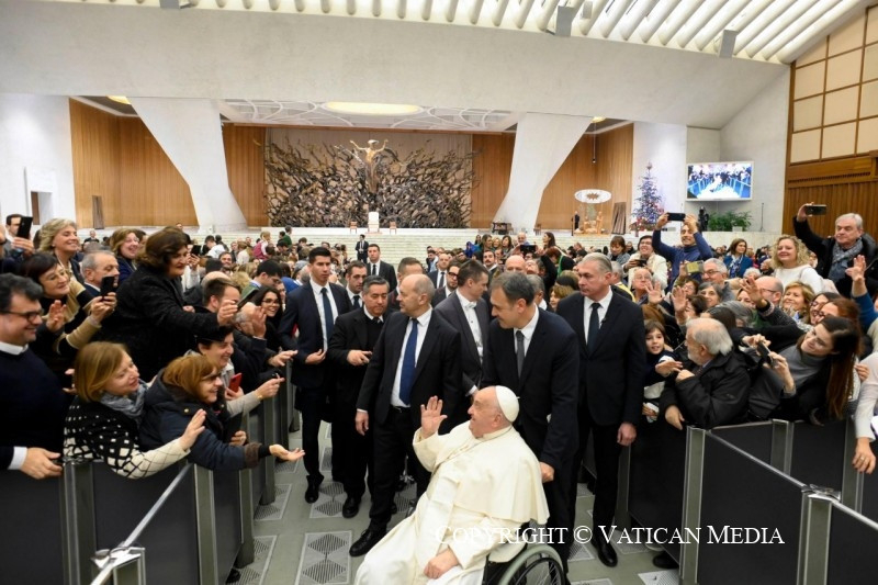 A mai találkozó egyben a jubileumi út elejéhez is kapcsolódik: a szent év néhány nappal ezelőtt kezdődött, pontosan annak az eseménynek az ünneplésével, amelyben Isten Fiának megtestesülésével a remény belépett a világba. A jubileumnak sok mondanivalója van az oktatás és az iskola világának, ugyanis a „remény zarándokai” mindazok az emberek, akik életük értelmét keresik, és azok is, akik segítenek a legfiatalabbaknak ezen az úton járni. A jó pedagógus a remény embere, mert bizalommal és türelemmel az emberi növekedés projektjének szenteli magát.
