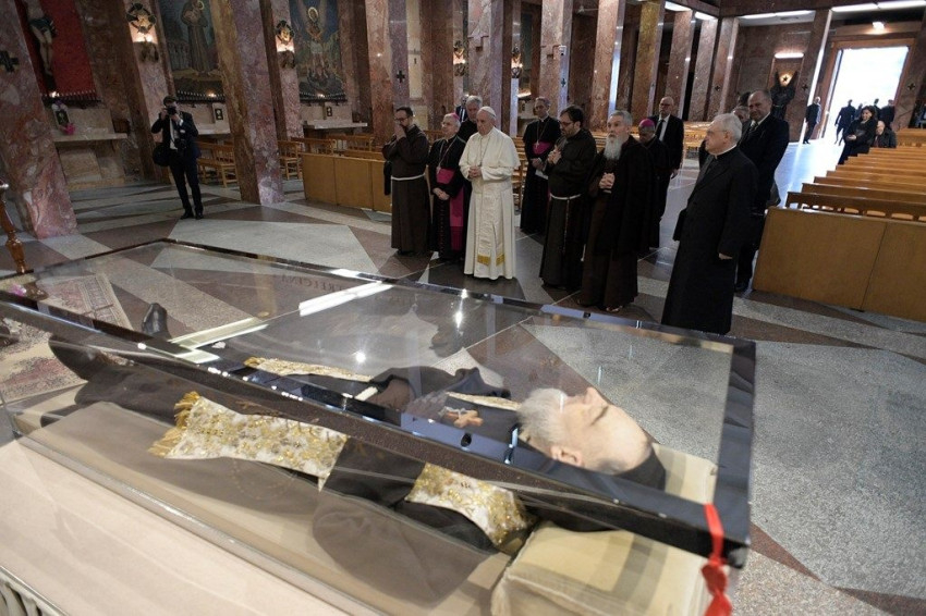 Az imacsoportok, a Casa Sollievo kórház betegei, a gyóntatószék; három látható jel, melyek három értékes örökségre emlékeztetnek minket: az ima, a kicsinység és az élet bölcsessége. Kérjük a kegyelmet, hogy mindennap ápoljuk őket!