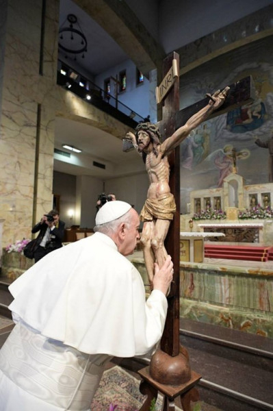 Végül a harmadik szó. [A bölcsesség.] Az olvasmányban Isten azt mondja: „Ne bölcsességével dicsekedjen a bölcs, és ne erejével dicsekedjen az erős” (Jer 9,22). Az igazi bölcsesség nem abban áll, hogy nagy képességekkel rendelkezünk, az igazi erő nem abban mutatkozik meg, hogy mekkora a hatalmunk. Nem az a bölcs, aki erősnek mutatkozik, és nem az az erős, aki a rosszra rosszal válaszol. Az egyetlen bölcs és legyőzhetetlen fegyver a hittől vezérelt szeretet, mert hatalma van arra, hogy lefegyverezze a gonosz erőit. Szent Pio egész életében küzdött a gonosz ellen, és bölcsen küzdött, mint az Úr: alázattal, engedelmességgel, kereszttel, szeretetből felajánlva fájdalmát. Mindenki csodálja, de kevesen teszik ugyanazt. Sokan dicsérik, de hányan követik? Sokan készségesen „lájkolják” a nagy szentek webhelyein, de ki teszi azt, amit ők? A keresztény élet ugyanis nem egy „kedvelés”, hanem „önátadás”. Az élet akkor jó illatú, amikor ajándékba adjuk; de szagtalanná válik, ha megtartjuk magunknak.