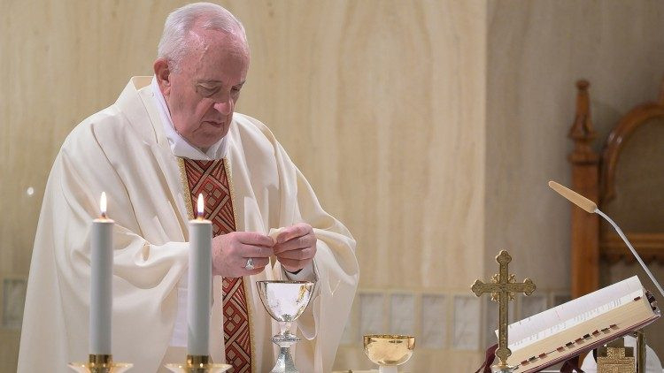 A Szent Márta-ház kápolnájában bemutatott szentmisét szentségimádással és eucharisztikus áldással zárta, majd lelki áldozásra hívott a Szentatya.