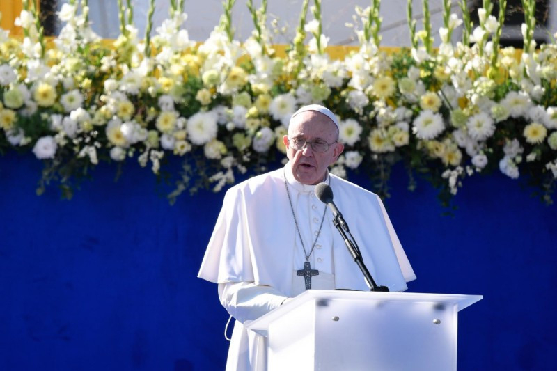 Ferenc pápa utalva a repülőtéri és az államfői palota előtti fogadásra és arra a gesztusra, amikor kenyérrel és sóval kínálták, emlékeztetett: A gazdagság nem a javak felhalmozásában, hanem a megosztásukban rejlik. A megtört és egyenlően elosztott kenyér az igazságosság, a só a szolidaritás jelképe. A Szentatya hangsúlyozta: a só is csak akkor ad ízt, mikor feloldódik, a szolidaritás is csak akkor gazdagít, ha másoknak adjuk. Hangsúlyozta: a koronavírus-járvány után nem elegendő a gazdaság újraindítása, mert az emberiség könnyen a profit hajszolásának kísértésébe eshet, olyan eufóriához vezetve, ami ahelyett, hogy egyesítene, megoszt.