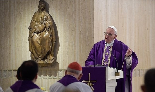 Szép nap ez a mai, hogy elgondolkodjunk a következőn: az az Isten, aki elhívta Ábrahámot, és arra indította, hogy elhagyja földjét, és elinduljon egy úton anélkül, hogy tudná, hova megy, ugyanaz az Isten, aki vállalja a keresztet, hogy beteljesítse az ígéretet, amelyet tett. Ugyanaz az Isten Ő, aki az idők teljességében ezt az ígéretet valósággá teszi mindannyiunk számára. Ami pedig egyesíti azt az első pillanatot az utolsóval, az a reménysugár. És ami egyesíti az én keresztény életemet a mi keresztény életünkkel egyik pillanatról a másikra, hogy mindig tudjunk előre haladni, még ha bűnösökként is, az a remény. És ami békét ad a rossz pillanatokban, az élet legsötétebb pillanataiban, az a remény. A remény nem okoz csalódást, mindig jelen van: csendes, alázatos, de erős.