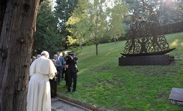 Az alkotás átadása az ima és az ünnep alkalma volt közel 250 brazil számára, akik Damasceno Assis bíboros, Aparecida érseke vezetésével érkeztek a Vatikánba. A pápa örömének adott hangot az Aparecidai Miasszonyunk-szobor megtalálását ábrázoló mű Vatikáni Kertekben való elhelyezése és jelenléte miatt. 2013-ban ígéretet tett, hogy idén vagy jövőre visszatér a brazil városba, hogy lerója kegyeletét Szűz Mária előtt, de mint mondta: „nem biztos, hogy ez lehetséges, de legalább itt lesz a közelemben”.