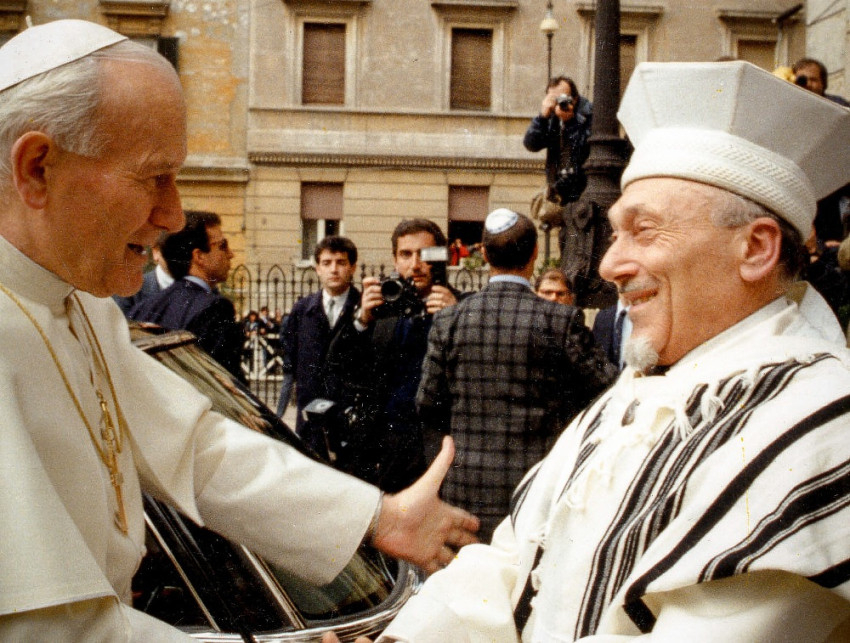 „A megdöbbenés hangján akarok ismét szólni az utolsó háború alatt a zsidó nép ellen foganatosított népirtás kapcsán, mely ártatlan áldozatok millióit juttatta a holokauszt sorsára. A római zsidó közösség is nagy véráldozatot fizetett ebben. Bizonyára jelentős gesztus volt a faji üldöztetés e sötét korszakában, hogy kolostoraink, iskoláink, szemináriumaink és a Vatikán épületei megnyitották kapuikat, és menedéket nyújtottak számos római zsidó számára” – mondta II. János Pál pápa 1986 áprilisában. Tíz évvel később, 1996. április 15-én pedig a Vatikánban fogadta Toaff főrabbit.