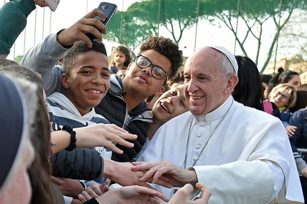 A gyerekek és fiatalok éneke fogadta Ferenc pápát a plébániai sportpályán, ahol egyből válaszolt kérdéseikre. „Kedves Ferenc pápa, mikor találkoztál először Jézussal?” – kezdte a sort Elisabetta. Mire a pápa megfordította a kérdést: „Jézus volt az, aki először közeledett. Jézus mindig elénk siet. És ha látod, hogy Jézus feléd jön, te pedig butáskodsz, és elfordulsz, akkor Jézus mit tesz? Elmegy?” – Mire a gyerekek kórusban felelték: „Nem! Segít neked!” – „Meghúzza a füledet?” – „Neeeeem. Megérteti veled, hogy hibáztál…” – „Így van… a szívedhez szól, megérteti veled, mi a szeretet, és ha te nem akarod meghallani – mit tesz? Elmegy? Ott marad. Türelmes. Jézus mindig megvár” – mondta Ferenc pápa.